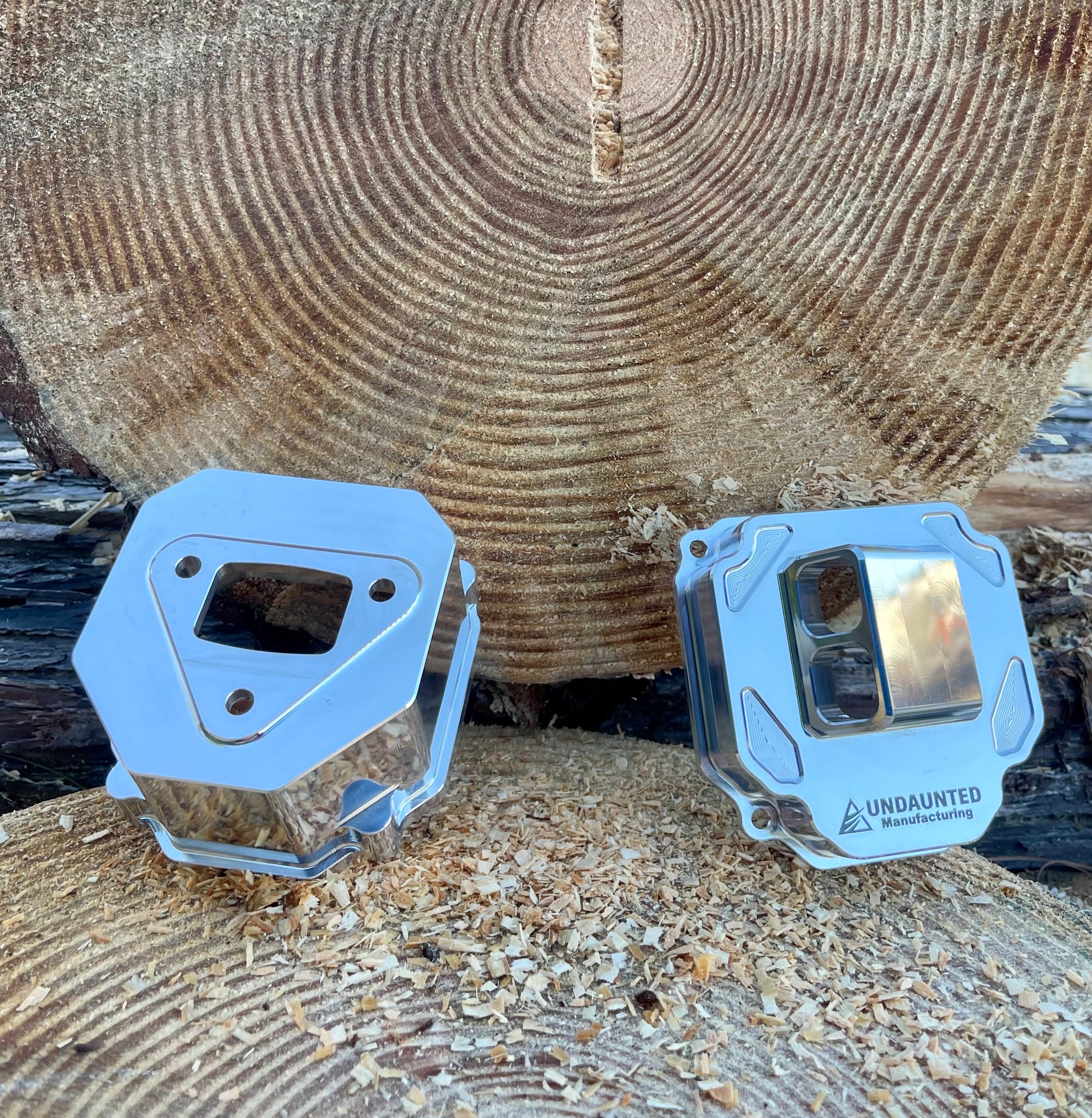 - CNC machined from 6061 T6 billet aluminum, a high-strength aerospace alloy that dissipates heat much faster than steel, improving engine cooling and extending part life