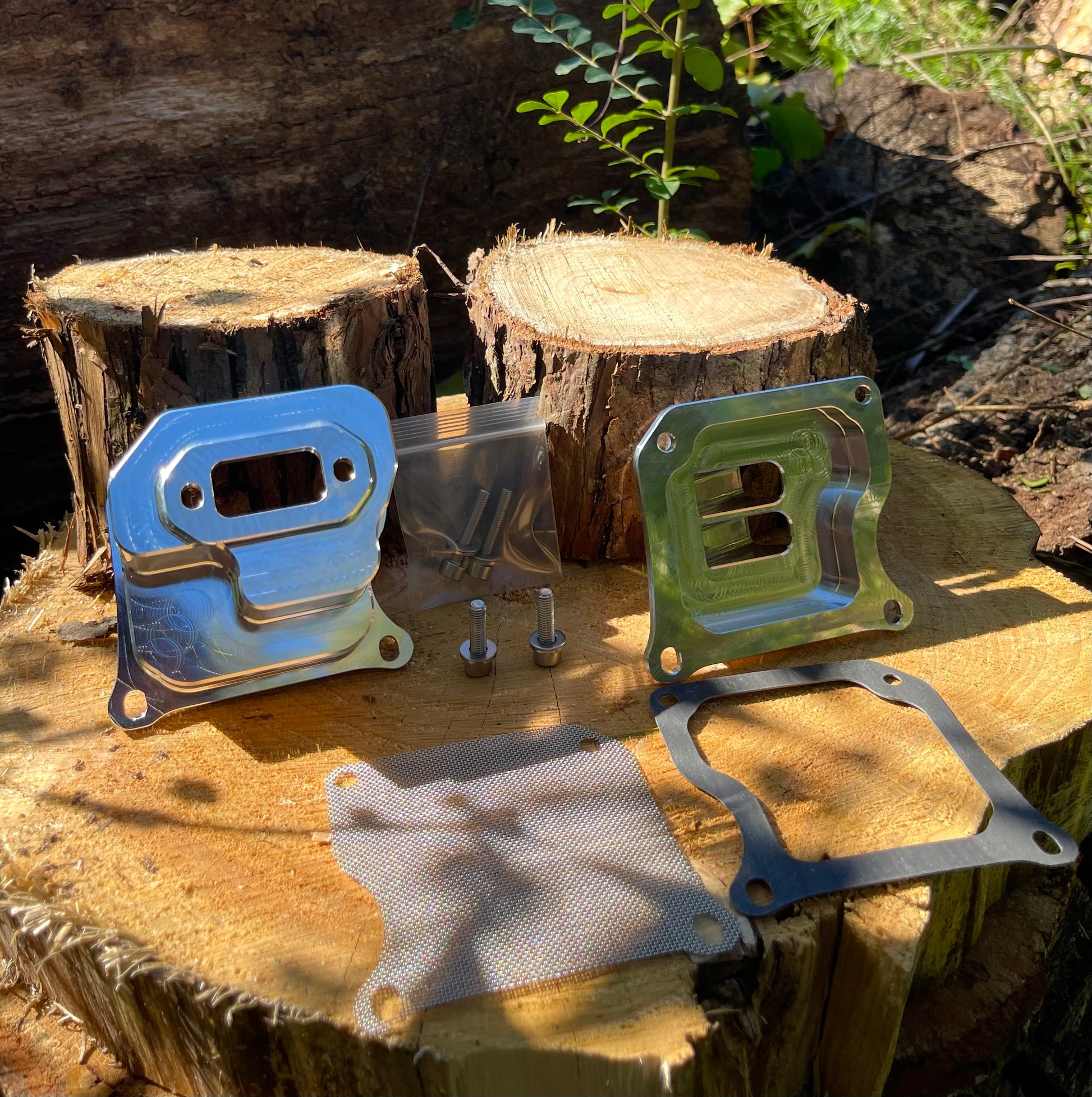 - CNC machined from 6061 T6 billet aluminum, a high-strength aerospace alloy that dissipates heat much faster than steel, improving engine cooling and extending part life