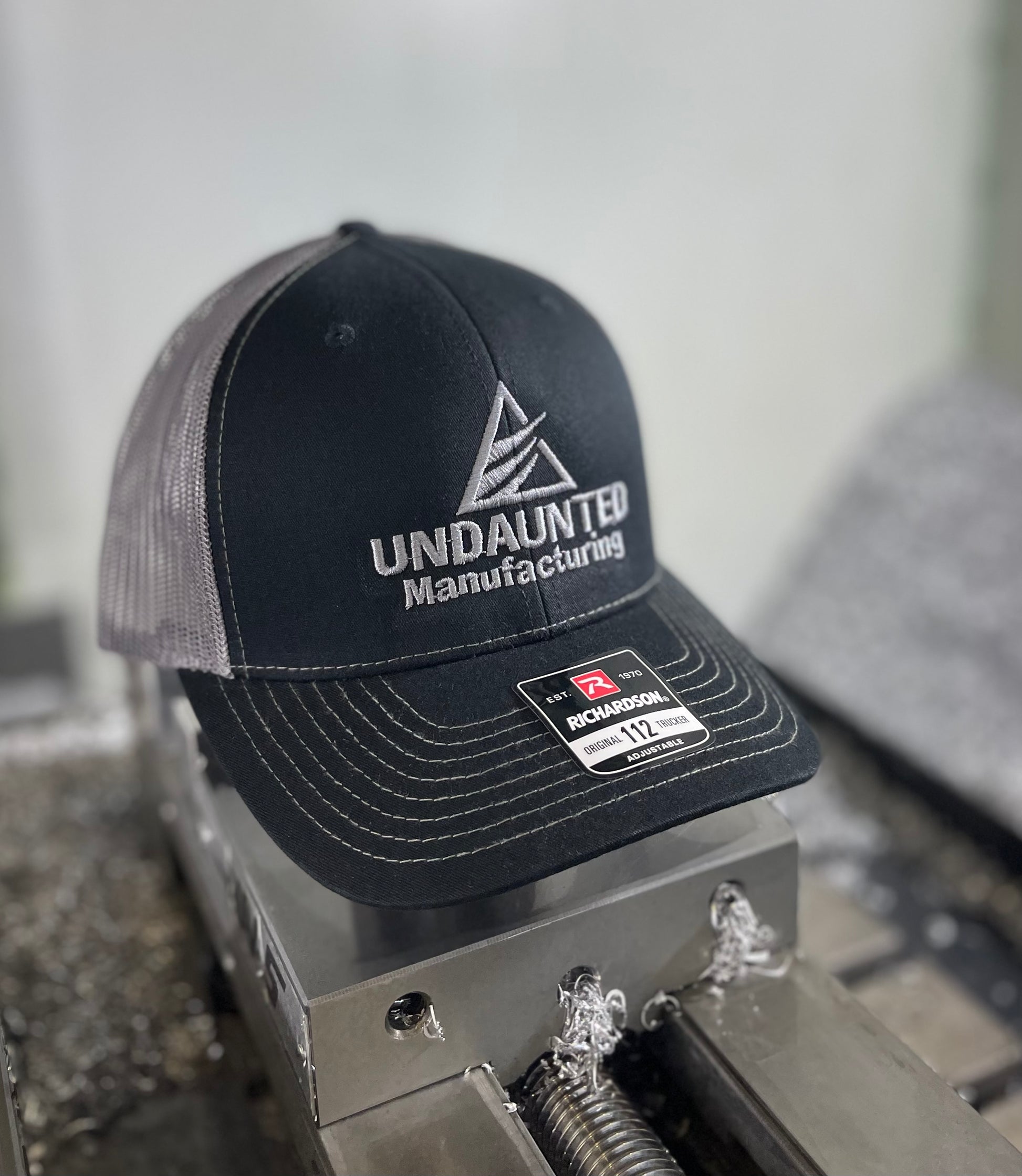 Our Black / Charcoal Grey Richardson 112 hat features the Undaunted Manufacturing logo embroidered front and center. Built on the industry-leading Richardson 112 platform, this hat delivers the perfect blend of durability, comfort, and a clean everyday look.